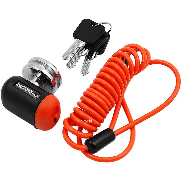 デイトナ ストロンガーディスクロック汎用【商品内容】・本体 (シャフトφ13)・スパイラルケーブル (φ4/有効長1.3m)・鍵3本ケーブル有効長:約1.3m重さ:154gポケットに入る軽量コンパクトサイズだから、持ち運びに便利スパイラルケーブルを掛けるのに最適な専用シャフトスパイラルケーブルを使用することで、ロックの外し忘れや盗難への抑止効果が期待できます。ほこりや雨から鍵穴を守るシャッター付き