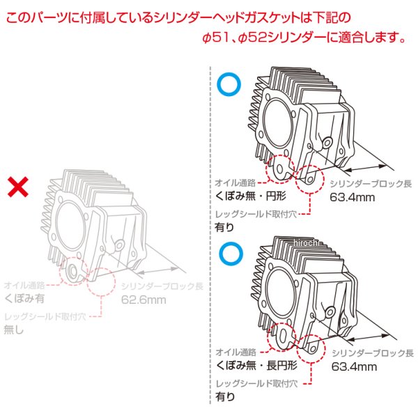 キタコ パッキンセット ボアアップKIT85/88/104/108cc用シリンダーブロック長63.5mmオイル通路が円形穴のシリンダー対応※オイル通路が長円形穴のシリンダーは使用不可【下記のキタコ製ボアアップKITに適合】LIGHT 85/88cc(適合車種A/B)STD/-2 85/88/104/108ccULTRA 85/88/104/108ccULTRA-SE 85/88/104/108cc【仕様説明】シリンダー、シリンダーヘッド部のリペアのパッキンSETです。補修用として工具箱に1SET入れておくと、急なトラブル発生時に大変便利です。ステンレス製ヘッドガスケット仕様。(厚み:約0.25mm)