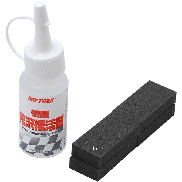 デイトナ 樹脂光沢復活剤容量:50ml数量1本無塗装の白化、色あせた樹脂パーツに塗りこむだけで、表面に透明なガラス状皮膜を形成。ワックスやツヤ出し剤とは次元の違う、樹脂本来の自然なツヤが約6ヶ月~1年も持続!水を弾き、劣化防止/防汚の効果があります。高温にさらされるバイクのエンジンカバーやサイレンサーなどにも安心して使用できます。