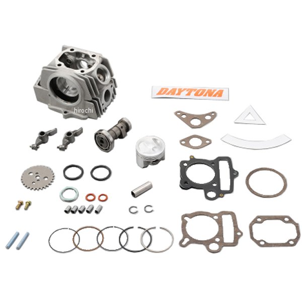 デイトナ NEWハイパーヘッドバージョンアップキット 88cc85年-90年 ホンダ ゴリラ98年-07年 ホンダ ゴリラ86年-99年 ホンダ ジャズ85年-97年 ホンダ モンキー99年-08年 ホンダ モンキー91年-01年 ホンダ モンキーBAJAヘッド側マニホールド取付部寸法:ピッチ45mm、吸気ポート径φ24推奨キャブレター:PC20/PE24【仕様説明】ノーマルヘッド対応ビッグボアキット88cc(93395)からハイパーヘッドにステップアップできるキットです。PE28/26、CR-MINI、VM26、YD28/24装着可能。所定性能発揮のため、キャブレターとマフラーの交換が必要です。髙圧縮のため、ハイオクガソリン使用してください。パワーが増大するので、同時装着パーツとの組み合わせが必要です。※下記部品を純正部品のままで使用しますと、パワーの増大に耐えれなくエンジンが破損する可能性があります。 ・同時装着パーツ1次側強化3ディスククラッチキット(品番:95634)メガオイルポンプ TYPE2(品番:74670)※モンキー/ゴリラ3.1PS(6V)取付不可。強化カムチェーン(品番:77415)※ボアアップ化に伴い振動やエンジン音が増加します。※オイルクーラーと油温計を装着し、油温の管理をしてください。高温(100℃以上)での連続走行を行なうとエンジンが破損する可能性があります。※当社指定最高回転数:12,000rpm。(1次側クラッチの場合は10,000rpm)
