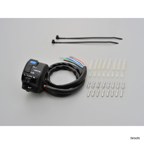 デイトナ ユニバーサル集合スイッチ2 左側用ユニバーサルタイプで多車種に使用可能な左側集合スイッチ。プッシュキャンセルウインカースイッチ仕様でウインカー操作が簡単。 汎用品 左側 仕様:ヘッドライトHi/Low切り替え / ウインカー / ホーン 横幅:47mm 配線長:700mm ギボシサイズ:CA/CB104タイプ ※汎用品のため、車両に合わせて配線加工が必要です。