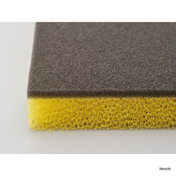 デイトナ ターボフィルターシート(L)ヒョウジュン粗目(黄色面)のフィルターと細目(黒色面)のフィルターのコンビネーション(ポリウレタンフォーム素材)。標準タイプに加え、粗目タイプと極細目タイプをラインアップ。 乾式タイプノーマルサイズに合わせ、カットして使用厚さ20mmSサイズ:250mm×400mm ※吸入空気量の増加に合わせて、メインジェットの番数を上げる必要がある車両もあります。※洗浄には中性洗剤を使用し、よく水で洗い流した後、陰干しにて確実に乾燥させてください。また、メンテナンス時に商品に劣化、損傷がみられた場合は、必ず新品に交換してください。
