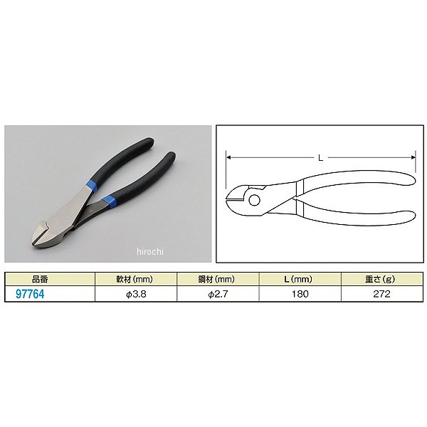 デイトナ ニッパー軟材:φ3.8mm鋼材:φ2.7mm全長:180mm重さ:272g