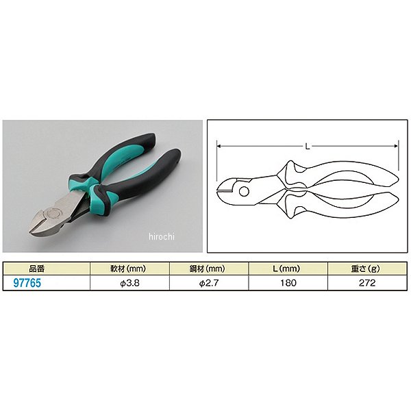 デイトナ パワーグリップニッパー軟材:φ3.8mm鋼材:φ2.7mm全長:180mm重さ:272g