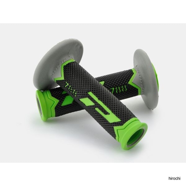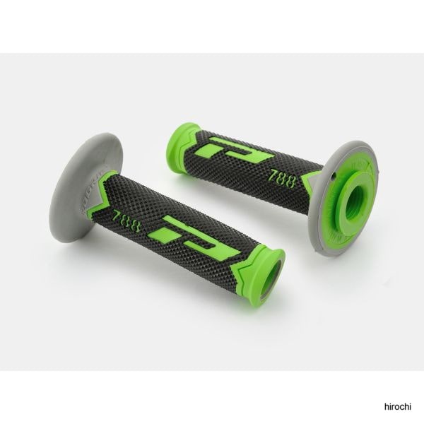 #788 プログリップ PRO-GRIP グリップ 貫通 オフロード用 緑/グレー/黒PROGRIPとは?ヨーロッパにおけるハンドルグリップの代名詞「PROGRIP」。モトGPやワールドスーパーバイク選手権で活躍するライダーへのスポンサードから商品作りにフィードバックし多くのライダーに愛用されています。耐震GELシリーズレーススポーツ走行ツーリング等、オールラウンドに使用可能!アウターラバー(ソフト)&インナーラバー(ハード)の二重構造グリップで手の疲労軽減に効果を発揮!!ハードなブレーキングを行なうレースやスポーツ走行にも耐える適度な硬さとやわらかさを兼ね備えオールラウンドに使用可能なグリップです。※ 耐震ゲルの材質は、溶剤に弱いためエポキシ樹脂製の専用グリップボンドが必要となります。※グリップをお選びの際は、純正グリップのサイズをご確認のうえ、お求めください。材質:耐震ゲル長さ:115mm内径(左右):22/25mm ※ハンドルグリップの長さは、製品上の誤差によって±5mm前後のばらつきがあります。