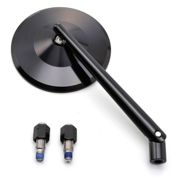 デイトナ HIGHSIDER ロッドミラー MONTANA汎用カラー:ブラック片側1本入りミラーアダプター付属(M10×P1.25正ネジ×1個/逆ネジ×1個)※ボルト固定部は全てネジ緩み止め剤を塗布する必要があります。※2007年以降のヤマハ車は右側が逆ネジのため、衝撃緩衝ができません。そのため新保安基準は適合外となります。※鏡面積は新保安基準に適合したサイズですが、衝撃緩衝装置が無いため、新保安基準適合外となります。2007年以降のモデルは別途緩衝装置の取付けが必要です。削り加工のエッジの効いたオーソドックスなラウンドデザインのミラーヘッド。モダンなデザインが様々なテイストの車両にベストマッチ。