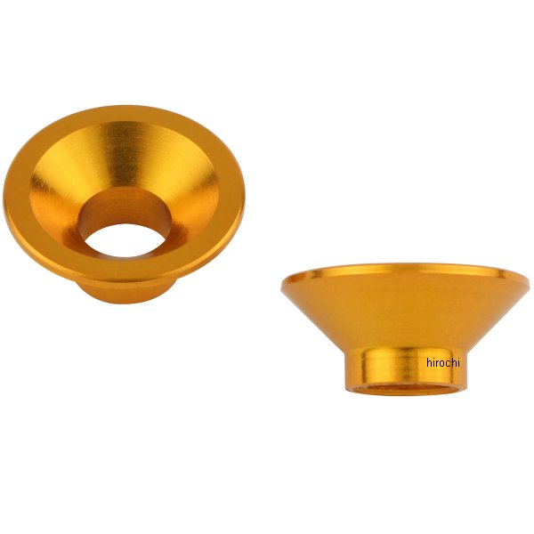 ポッシュ POSH 皿ボルト 内径変換 アルミカラーセットカラー:ゴールドサイズ変換:M8→M6素材:アルミA2017材削り出し アルマイト仕上げ入数:2個入り日本製【仕様説明】内径変換アルミカラーにM8→M6皿ボルト変換カラーを新設定。バックステップのマスター取付穴がM8皿ボルトで、マスターシリンダーがM6取付穴の場合に便利な変換カラー。バックステップとM6リアマスターシリンダー(ゲイルスピードなど)の同時装着がスッキリまとまります。