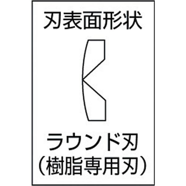 ・φ8~10mmまでの樹脂の切断が可能です。・全長(mm):200・切断能力(mm)樹脂:φ10・ラウンド刃・ばね付・ソフトカバー付・炭素鋼・グリップ:ポリ塩化ビニール・樹脂とは軟質樹脂のことで、アクリル・ガラス繊維など硬い樹脂の使用には適しません。・生産国 日本・JANコード 4953881313744・質量 340g・コード:104-1452 ・品目:99200