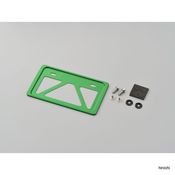 デイトナ ナンバープレートホルダーS 緑振動によるナンバープレートのひび割れや破損を予防します。1mm厚アルミ材を大胆に肉抜きすることで必要な強度を保ちつつ極限まで軽量化しました。板厚が薄いのでフチのプレスラインもシャープになりスタイリッシュ。ナンバープレートのドレスアップに最適です。 ■新保安基準適合【付属品】アルミナンバープレート×1フランジスペーサー×2個フランジボルト(M6×15mm)×2個フランジナット(M6)×2個ウレタンスポンジ×4個 ※取付工具は付属しません。※必ず取り付けするナンバープレートの形状をご確認ください。※取り付けするフェンダーの形状によっては装着できない場合があります。※プレート自体に防振効果はありません。※付属のボルトで長さが足りない場合は、車両に合わせて適切な長さのボルトを別途ご用意ください。