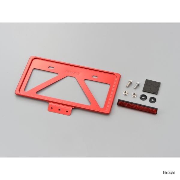 デイトナ ナンバープレートホルダーL リフレクター付き 赤振動によるナンバープレートのひび割れや破損を予防します。1mm厚アルミ材を大胆に肉抜きすることで必要な強度を保ちつつ極限まで軽量化しました。板厚が薄いのでフチのプレスラインもシャープになりスタイリッシュ。ナンバープレートのドレスアップに最適です。 ■新保安基準適合【付属品】アルミナンバープレート×1リフレクター×1フランジスペーサー×2個フランジボルト(M6×15mm)×2個フランジナット(M6)×2個ウレタンスポンジ×4個 ※取付工具は付属しません。※必ず取り付けするナンバープレートの形状をご確認ください。※取り付けするフェンダーの形状によっては装着できない場合があります。※プレート自体に防振効果はありません。※付属のボルトで長さが足りない場合は、車両に合わせて適切な長さのボルトを別途ご用意ください。