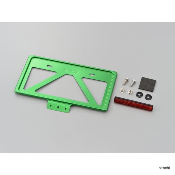 デイトナ ナンバープレートホルダーL リフレクター付き 緑振動によるナンバープレートのひび割れや破損を予防します。1mm厚アルミ材を大胆に肉抜きすることで必要な強度を保ちつつ極限まで軽量化しました。板厚が薄いのでフチのプレスラインもシャープになりスタイリッシュ。ナンバープレートのドレスアップに最適です。 ■新保安基準適合【付属品】アルミナンバープレート×1リフレクター×1フランジスペーサー×2個フランジボルト(M6×15mm)×2個フランジナット(M6)×2個ウレタンスポンジ×4個 ※取付工具は付属しません。※必ず取り付けするナンバープレートの形状をご確認ください。※取り付けするフェンダーの形状によっては装着できない場合があります。※プレート自体に防振効果はありません。※付属のボルトで長さが足りない場合は、車両に合わせて適切な長さのボルトを別途ご用意ください。