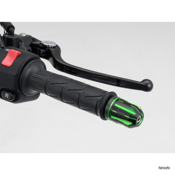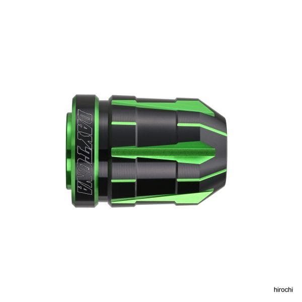 デイトナ ハンドルバーエンドプラグ TECHNO M6 カワサキ 緑アルミの無垢素材から繊細で丁寧な加工で削り出し、2色のコントラストがきわだつデュアルアルマイトで仕上げました。「スクラッチ」にエッジを効かせ幾何学模様にモディファイ。M6ボルトで固定されているKAWASAKI車の純正ハンドルに対応しています。 カラー:ライムグリーン 素材:本体 - アルミ製 / アタッチメント - スチール製(黒塗装仕上げ)サイズ:KAWASAK車 M6KAWASAKI車の純正インナーウエイトはそのままご使用可能です。