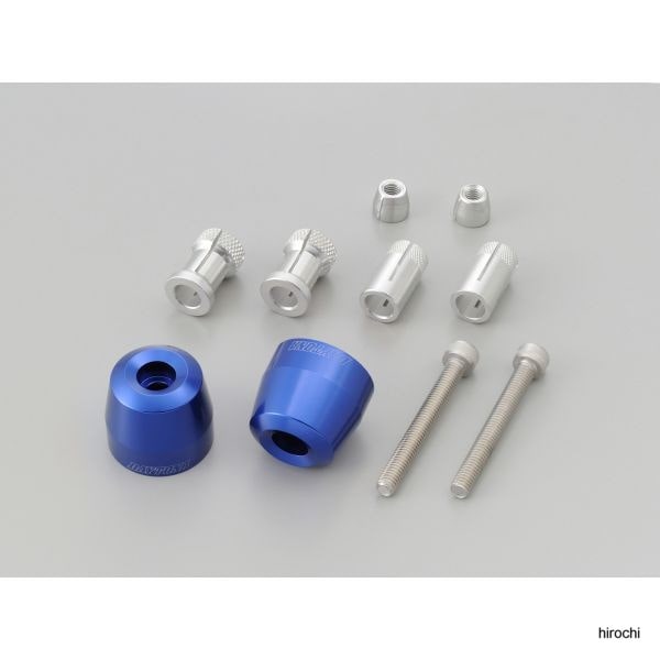 デイトナ アルミビレットバーエンド サーフェスタイプ 青飽きのこないシンプルなデザイン。2種類のアルミ製取付アタッチメントが付属しハンドル内径Φ14~Φ19まで幅広く対応します。転倒の際にはブレーキまたはクラッチレバーの破損を低減。転倒の際には取付ボルトが破損しにくいデザインです。 カラー:ブルー タイプ:サーフェイス アルミ削り出しアルマイト仕上げ外径:Φ30 全長:26.5mm 片側重量:約60gハンドル内径:Φ14~Φ19対応 デイトナロゴ入り ※ホンダ、ヤマハの一部の純正ハンドルに装着する場合は、インナーウエイトの取り外しが必要です。※一部のスズキ車純正ハンドルに対応しています。※スロットル側への装着の際は、グリップと接触しないように位置調整を行なってください。※アルマイト仕上げの商品は環境や使用状況により早期退色が発生する可能性があります。