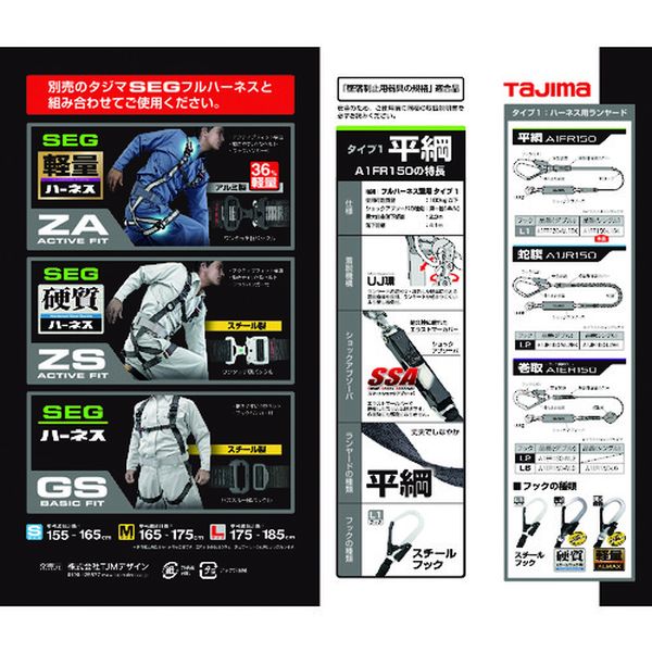 ・丈夫でしなやかな平ロープです。・フルハーネス型用 タイプ1です。・シングルL1ランヤードです。・より戻し付です。・新規格対応ハーネス用ランヤード・最大使用可能質量(kg):100・幅(mm):16.5・長さ(mm):1500・フック口開き(mm)人体側:9・フック口開き(mm)構造物側:55・色:黒・フックタイプ:L1(高耐久スチール)・タイプ:シングル・ランヤード寸法幅(mm):16.5・ランヤード寸法長さ(mm):1500・厚生労働省「墜落制止用器具の規格」規格品・ランヤード種別:タイプ1・種類:フルハーネス型・ショックアブゾーバ種別:第一種(4kN)・最大自由落下距離:2.3m・落下距離:4.1m・フック:スチール・ロープ:ナイロン・接続環:スチール・墜落制止用器具(安全帯)及び墜落制止用器具(安全帯)関連具は消耗品であり、使用しているうちに摩耗等により性能が低下しますので適切な時期に交換してください。・ご使用前に取扱説明書を必ずお読みください。・製品仕様は予告なく変更する場合がございます。・予めご了承ください。・生産国 日本・JANコード 4975364261311・質量 880g・コード:168-0032 ・品目:A1FR150L1BK