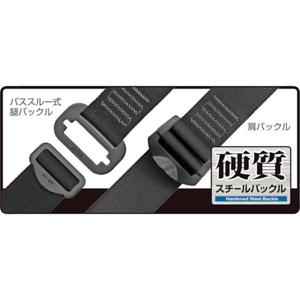 ・束縛感の少ないベーシックフィット構造です。・肩に食い込まない46mm幅広ベルトです。・ハーネスを胴当てベルトに直接取り付けるから装着スペースを取りません。・ハーネス用フックハンガー付です。・作業の邪魔にならない両側巻取式を採用した超小型巻取式(ロック機能なし)です。・ショックアブソーバを背中ベルトにがっちり固定するダブル固定バンドを採用しています。・アクティブSSA(スマートショックアブソーバ)を搭載。ランヤード上出しタイプなので腰袋にロープが掛かりにくいです。・フックは硬質焼入ゲート付スチールフック(L2フック)です。・ランヤードが絡まりにくいより戻し付です。・新規格対応SEGハーネスセットとして。・サイズ:M・色:黒・腿バックル:パススルー・ベルト幅(mm):46・フック口開き(mm):55・最大使用可能質量(kg):100・ランヤード寸法幅(mm):16.5・ランヤード寸法長さ(mm):1500・フック金具(本):2・厚生労働省「墜落制止用器具の規格」適合品・種類:フルハーネス型(フルハーネス+フルハーネス用ランヤード)・ランヤード種別:タイプ1・参考適合身長:165~175cm・背中ベルト:Y型・腿ベルト:水平型・ベルト:ポリエステル・バックル:スチール・ロープ:ポリエステル+ベクトラン・フック:スチール・墜落制止用器具(安全帯)及び墜落制止用器具(安全帯)関連具は消耗品であり、使用しているうちに摩耗等により性能が低下しますので適切な時期に交換してください。ご使用前に取扱説明書を必ずお読みください。製品仕様は予告なく変更する場合がございます。予めご了承ください。・生産国 日本・JANコード 4975364265876・質量 2.670kg・コード:244-3669 ・品目:A1GSMERWL2BK