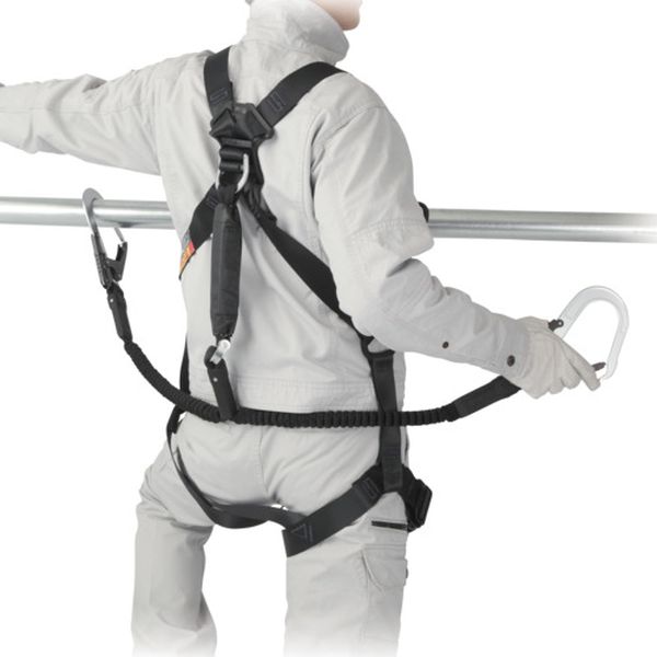 ・動きやすい蛇腹タイプのランヤードとセフハーネス一体型セットです。・2カ所のセフで道具を着脱できる胸2箇所のセフホルダーを装備しています。・セフホルダーに工具が収まるので、胴ベルト無しで腰回りスッキリ。・調整幅が広いのでどんな体型にもフィットします。・使用可能質量:130kg以下・短くなるので邪魔にならない蛇腹式のランヤード・130kgまで対応可能なショックアブソーバを採用・本製品はハーネス・ランヤードが一体型です(着脱不可)・肩パッド、腿パッドは付いていません・新規格対応SEGハーネス・サイズ:フリー・色:黒・ベルト幅(mm):41・最大使用可能質量(kg):130・腿バックル:パススルー式・ランヤード長さ(mm):1500・フック口開き(mm):構造物側:60・ランヤード長(m):1.5(収縮時約0.96m)・最大自由落下距離:2.3m・落下距離 100kg:4.1m/130kg:4.5m・種類:フルハーネス型タイプ1・最大使用可能質量:130kg・ショックアブゾーバ種別:第一種(4kN)・ベルト:ポリエステル・バックル:スチール・縦ベルト用セフホルダー樹脂 × 2箇所・フルハーネスとランヤードは同一メーカー同士の組み合わせを推奨致します。・墜落制止用器具(安全帯)及び墜落制止用器具(安全帯)関連具は消耗品であり、使用しているうちに摩耗等により性能が低下しますので適切な時期に交換してください。・ご使用前に取扱説明書を必ずお読みください。・製品仕様は予告なく変更する場合がございます。予めご了承ください。・生産国 日本・JANコード 4975364268860・質量 2.060kg・コード:682-9923 ・品目:A4SFBJRWL4BK