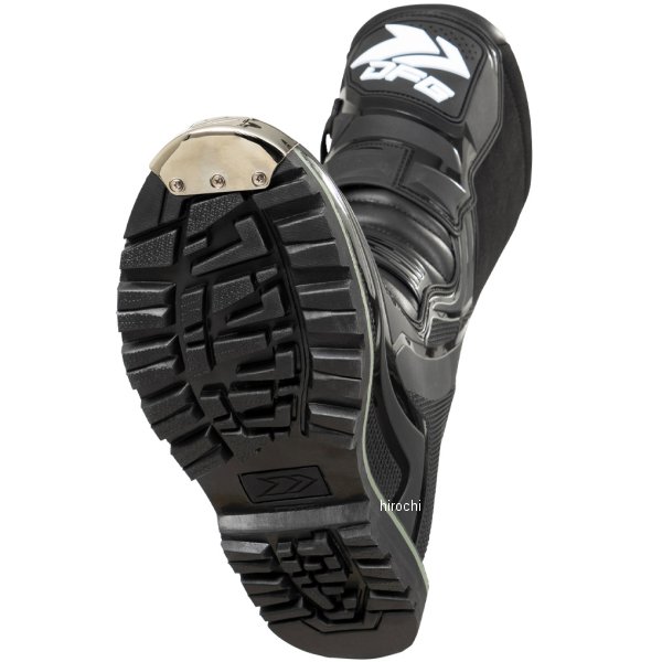 ディーエフジー DFG フレックス ブーツ オフロード 2.0カラー:ブラックサイズ:24.5cmオフロード初心者~中級者に最適な、ブロックソール エンデューロブーツ。ブーツ本体は操作性を損なわずに高い強度を確保し、障害物や転倒した際にしっかり足を保護する。軽くて柔らかいため、これからオフロードを始める初心者でも使いやすい。本格的なオフロードコースから林道ツーリングまで幅広く使用可能。日本人の幅広・甲高な足の形状に合わせたジャパンフィット設計により、快適なフィット感を実現。重量:約1500g(26.5㎝/片足重量)ブーツ甲幅:ワイド設計(4E相当)ニーシンガード/ニーブレース対応素材:【甲部分】合成皮革・ポリウレタン(TPU)【 裏地】ポリエステル・スパンデックス【 ソール】合成樹脂(ラバー)【ご注意ください】・履き始めは、まだ生地が硬い状態のためブーツが硬く感じます。安全性を確保するためにも、ブーツを柔らかくするために、必ず「ブーツの慣らし作業」を行ってください。・オフロードブーツはオンロードブーツと比べてつま先に厚みがあるため、バイクの車種によっては純正のシフトレバーの位置ではシフトチェンジ(シフトアップ)がやりづらい場合がございます。その場合、シフトレバーの高さを1段階上げるなどの車体側の調整を行ってください。・オフロードコースや林道を走行する場合は、安全面からニーシンガードなどの膝や脛を守るプロテクターとセットで着用することを推奨いたします。・オフロードレーサーなどのキックペダルがある車両の場合、キックスタート時に過度に荷重をかけるとソールが破損する恐れがありますのでご注意ください。・ブーツの上から2番目のストラップの長さが合わない場合、上から2番目と3番目のストラップを付け替えることでストラップの長さ調整をすることが可能です。・ご使用になる前にブーツが安全な状態であることを確かめてご使用ください。使用頻度によってはバックルのボルトが緩んでくる場合がございます。ボルトが緩い場合はボルトの増し締めやネジロック剤などを使用してください。