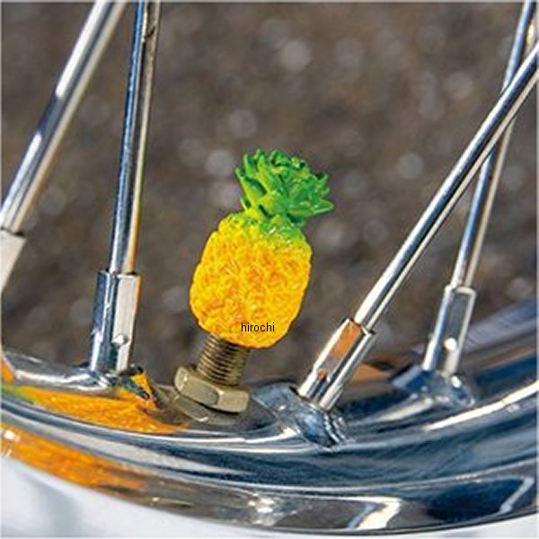 ガッツクローム バルブキャップセット BLUE PANIC オリジナル パイナップルサイズ:約(H)3cm x (W)1.7cm2個セットMOONEYES Authorized Dealers Blue Panic のオリジナルエアバルブステムキャップです。細部までリアルに模られたパイナップルが、車の足回りのアクセントになり、小さくても存在感抜群です。