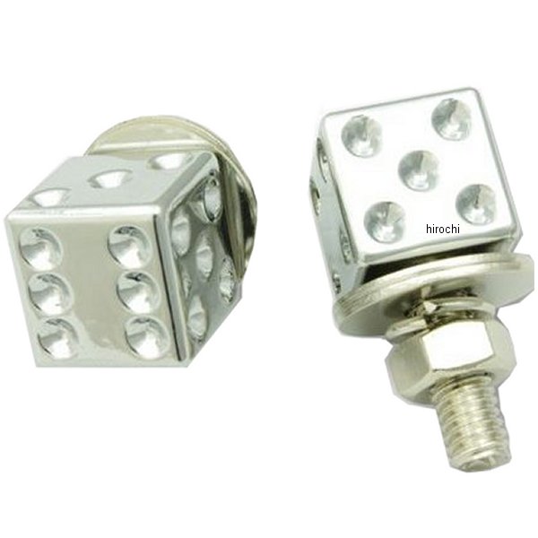 ガッツクローム ライセンスボルトセット ダイスカラー:クロームダイス型のお洒落なライセンスボルトです。付け替えるだけで簡単にドレスアップできます。2個1セットでの販売です。