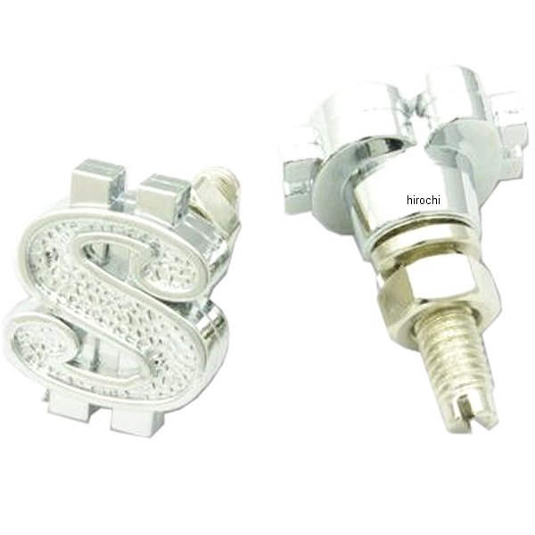 ガッツクローム ライセンスボルトセット ダラーカラー:クロームキラリと光る$マークのライセンスボルトです。付け替えるだけで簡単に装着可能です。2個1セットでの販売となります。