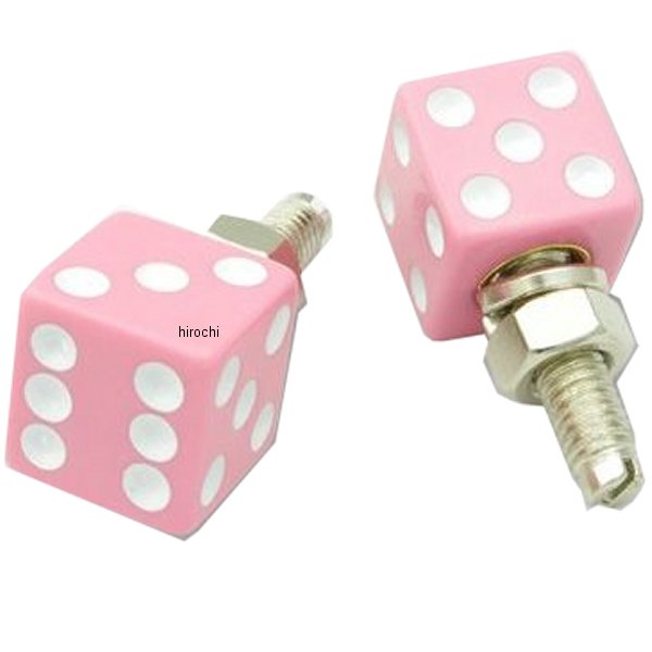 ガッツクローム ライセンスボルトセット ダイスカラー:ピンクスタッドの長さ:約20mm洒落たサイコロ型ナンバー固定ボルト×2個セットです。付け替えるだけで簡単にバイクをドレスアップできます。