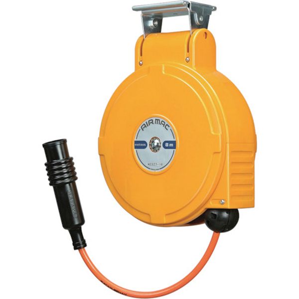 ・余分な力は不要、一定の長さで確実に止まるラチェット式ストッパーです。・天井、柱、壁に取り付け可能です。・一次側ホース1m付です。・自動巻き取りでホースの出し入れがスムーズ。・器具の破損や断線を防ぐホース引き出し用ヒモ付です。・ホース内径×外径(mm):6.5×10・ホース全長(m):8・取付一次側:HC-2P1/4プラグカプラ付・取付二次側:1/4ワンタッチロータリーナットカプラ付・幅(mm):245・奥行(mm):98・高さ(mm):323・使用圧力:1.5MPa・ホース仕様:ポリウレタンブレード入・本体:ABS樹脂・ホース:編糸補強ポリウレタン(ブレード入り)・一次側ホース(1m)・袋ナットジョイント・プラグカプラ・取付金具一式・生産国 日本・JANコード 4930510314426・質量 3.700kg・コード:106-5122 ・品目:ABU082