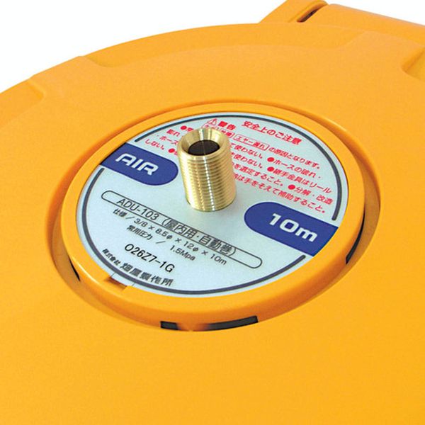 ・分解の必要がなく、簡単手順でホース交換ができるメンテナンス性に優れたシリーズです。・ブレーキ機構付です。・ホースを必要な分だけ引き出し、任意の長さで止めることができます。・ホースの引き出し用引きひもつきです。・ホース全長(m):10・取付一次側:3/8プラグカプラ付(内径8.5mm×1mホース付)・取付二次側:3/8ワンタッチロータリーナットカプラ付・ホース一次側全長(m):1・ホース二次側全長(m):10・使用圧力(MPa):1.5・ホース材質:編糸補強1Bブレード入ポリウレタン・ホース内径:8.5mm・ホース外径:12mm・ブレーキ付き仕様(受注製作品)・受注生産品・生産国 日本・JANコード 4930510316079・質量 4.900kg・コード:436-4224 ・品目:ADU2B103