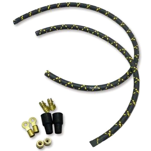 ガッツクローム ビンテージスタイルプラグコードキット99年以前 ビッグツイン03年以前 スポーツスター(1200Sモデルは除く)カラー:ブラック/イエロービンテージテイスト溢れるプラグコードです。必要な長さに切り、端子をかしめて取り付けして下さい。※プラグ側の端子はキャップが無いので必ずエンジン始動時は触れないで下さい。