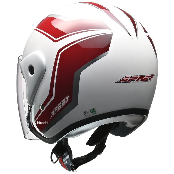 APRET-WH リード工業 ジェットヘルメットサイズ:フリーカラー:ホワイト全排気量対応【仕様説明】基本性能をしっかり抑えたスタンダードなジェットヘルメットスパナをモチーフにしたサイドグラフィックとシャープなセンターラインを融合させたグラフィックが目を引くモデル。前頭部に開閉式エアベンチレーションを装備。走行中にベンチレーションから風を取り込みヘルメット内部にこもりやすい熱やムレを解消。ヘルメットホルダー固定用のDリングを装備。シールド素材はポリカーボネイト製で割れにくく、ハードコート・UVカット仕様。標準装備のシールドカラーはクリア。【規格】SG/PSC【届出事業者】株式会社リード工業【検査機関】一般財団法人製品安全協会