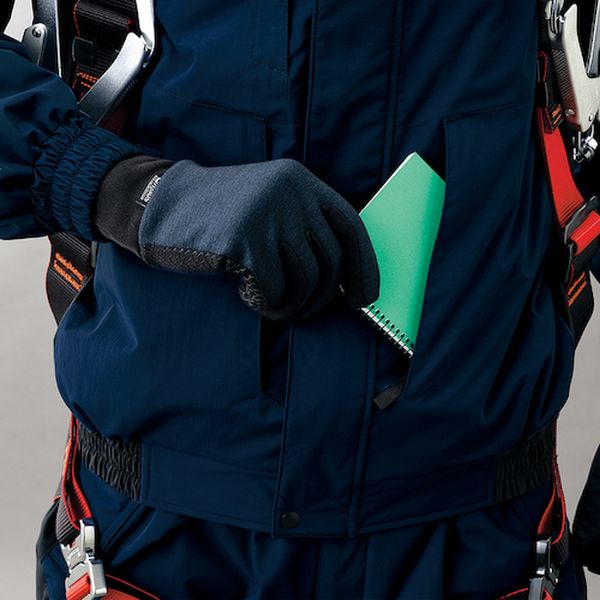 ・防寒着の上からフルハーネスを着用でき、目視での点検が可能です。・脇メッシュベンチレーション付きで衣服内の温度調整が可能です。・ハーネスで負荷がかかる部分はコーデュロイ生地で補強しています。・透湿・防水・静電生地・中綿仕様の商品です。・高所作業でのフルハーネス着用時に。・色:ネイビー・サイズ:3L・着丈(cm):76・胸囲(cm):126・肩幅(cm):56・品名:ブルゾン・表生地1:ナイロン100% 表/ナイロンタスラン 裏/PUラミネート2層(裏PUラミネート)・表生地2:ナイロン100% タフタ ・中綿:ポリエステル100%(シンサレート)・裏地:ポリエステル100% タフタ ・加工/耐水圧10000mmH2O 透湿性/8000g/[[M2]]/24hrs・静電防止 JIS-T8118 適合品・生産国 中国・JANコード 4524851344367・質量 800g・コード:435-9162 ・品目:AZ89760083L
