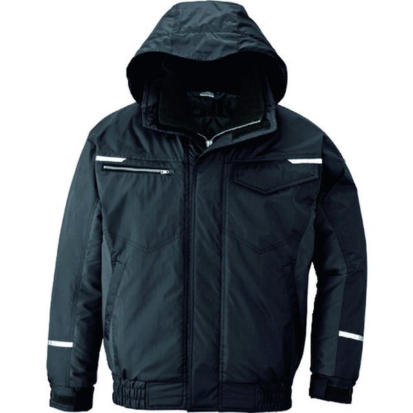 ・制電基準JIS T8118適合品です。・防風機能付きで保温効果があります。・撥水機能付きです。・360度反射材付きで安全性にも配慮しています。・屋外作業・倉庫業などに。・色:ブラック・サイズ:4L・着丈(cm):76・胸囲(cm):146・肩幅(cm):61・品名:ブルゾン・袖丈(cm):65・制電防止:JIS T8118適合品・表生地:ポリエステル100%(静電タフタ/裏PUコーティング/帯電防止・制電糸入り)・裏地:ポリエステル100%・中綿ポリエステル100%・フロントファスナー:ビスロンファスナー・フード取り外し可能・生産国 中国・JANコード 4548413029714・質量 780g・コード:226-1565 ・品目:AZ93660104L