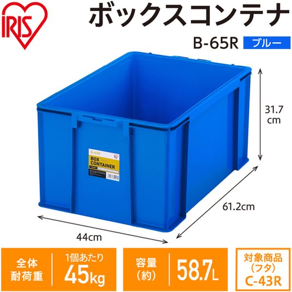 ・収納用品として暮らしのさまざまな場面で多目的に活用できるBOXコンテナです。・収納に。・容量(L):58.7・色:ブルー・外形寸法(mm)間口:612・外形寸法(mm)奥行:440・外形寸法(mm)高さ:317・有効内寸(mm)間口:522・有効内寸(mm)奥行:378・有効内寸(mm)高さ:308・ポリプロピレン・生産国 日本・JANコード 4967576685900・質量 2.550kg・コード:629-3702 ・品目:B65RBL