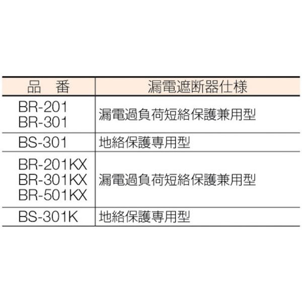 ・安全作業の必需品、漏電遮断器付タイプです。・電線の溶解・焼損事故を防ぐ温度センサー付きです。・コンセント防塵キャップ:油やホコリが原因で起こるコンセントの火災(発火)や故障を防止します。・絶縁性に優れた樹脂ドラムを採用、巻き線中心部の熱を逃がす放熱孔付です。・安全な漏電遮断器付:BR型は使い過ぎも感知する過負荷付型です。・ブレーカーカバー:漏電遮断器の保護カバーはワンタッチで開き、復帰操作を簡単に行うことができます、透明カバーなので外から動作状況が確認できます。・電線種:ソフトンケーブルVCT・電線仕様長さ(m):20・電線仕様太さ([[MM2]]):2.0・電線仕様芯数(C):2・定格電流(A):7・コンセント仕様定格:2P・15A・125V・コンセント仕様形状:[[二相1]]抜止め型・コンセント仕様個数:3・温度センサー:○・通電ランプ:○・漏電遮断器仕様:漏電過負荷短絡保護兼用・AC100V・コンセント防じんキャップ付・生産国 日本・JANコード 4930510100081・質量 6.600kg・コード:106-3138 ・品目:BR201