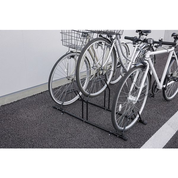 ・簡単に設置ができる自転車スタンドです。・子供用からスポーツタイプまで様々な車種のタイヤに幅広く対応します。・高低差がありスペースを取らず、横の自転車とハンドルが干渉しないのでスムーズに取り出しができます。・スタンドは転倒防止のために地面に固定することを推奨します(※別売)。・お客様組み立てとなります。・収容台数(台):3・間口(mm):1070・奥行(mm):430・高さ(mm):475・適合タイヤ径(インチ):下段:20以上、上段:22以上・適合タイヤ幅(mm):55以下・本体:金属(鋼)(ポリエステル樹脂塗装)・ゴム足:合成ゴム・生産国 中国・JANコード 4967576736312・質量 2.820kg・コード:696-2238 ・品目:BYS3R