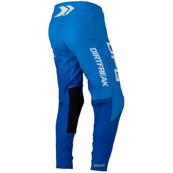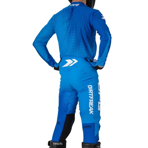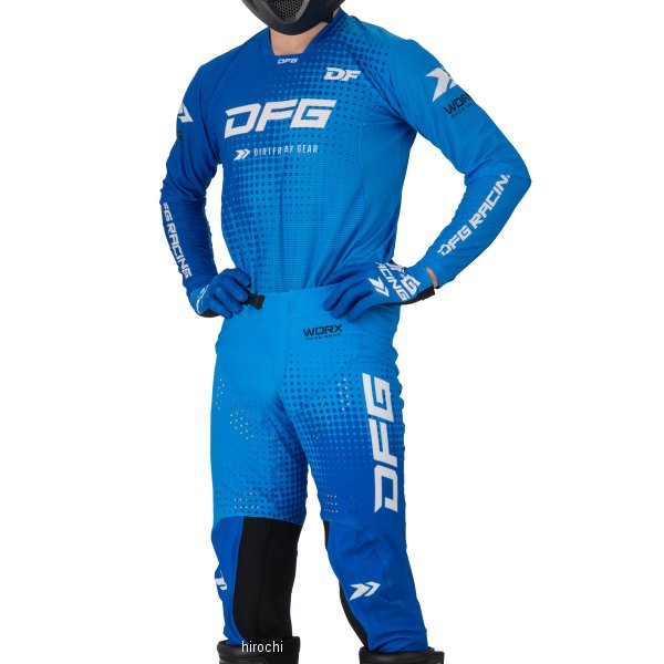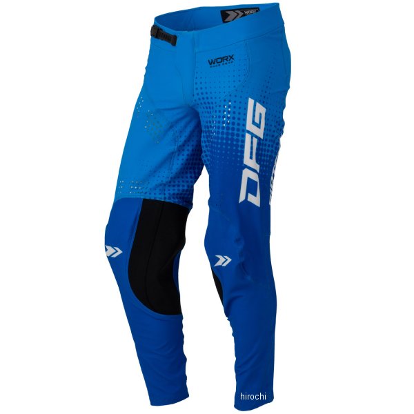 ディーエフジー DFG ワークス パンツ トーンサイズ:28カラー:ブルー素材:ポリエステル、ケブラーアーマーテックス【仕様説明】プロライダーの要望によって誕生したレーシングモトクロスパンツ。軽量かつ縦横4方向に伸縮するストレッチ生地を採用。新たにサイズ調整がしやすいアジャスターバックルを採用。幅広なウエストパネルを確実に体にフィットさせ、前傾姿勢で肘を上げて胸を張る「アタックポジション」を想定したパターンを採用。両膝内側にはエンジンやエキパイからの熱に耐え、耐摩耗性と引裂き強度に優れる、ケブラーアーマーテックスを採用。熱がこもりやすい太もも内側部分には、大型ベントホールを配置。スポーツライディングによるライダーのオーバーヒートを、積極的に冷却。ライダーに余計なストレスを与えず、体力の消耗を防ぎ、常に攻め続ける事ができるハイパフォーマンス仕様。