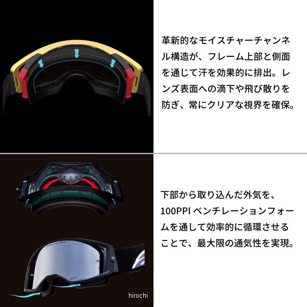 アルパインスターズ スーパーテック ゴーグルカラー:ブラック/グレーフィルムカラー:クリア【仕様説明】モトクロスおよびスーパークロスのトップレースにおいて開発・実証。 快適性、視認性、汗処理性能を高次元で融合したハイパフォーマンスモデル。本モデルには、レンズ、フィルム2巻、フィルムバイザー、ワイドヴィジョンロールオフシステムが付属。左右160mm以上のワイドな視野は業界最高水準。・ゼロ歪みのポリカーボネート製レンズ・Super-Lockレンズ固定機構・ULTRA-WIDE 48mmロールオフシステム対応設計・視界を妨げないキャニスター配置・二重構造フレーム(ハード+A-FLEXインナー)・3D成型・多層構造フェイスフォーム・モイスチャーチャンネル構造・Forced-Air ベンチレーション構造・13度ストラップウェッジ・45mm幅シリコンストラップとインジェクションバックル
