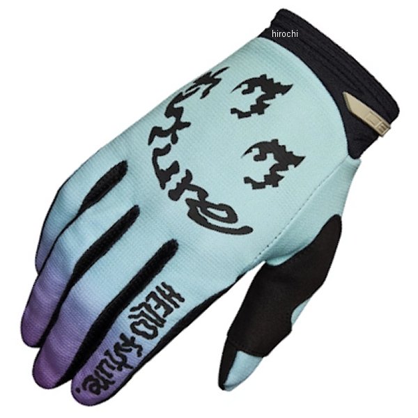 フォックス FOX 180グローブ ハローフューチャーサイズ:XLカラー:ライトブルーフィット感と着け心地を最大限に高めた新たなエントリーグレードグローブ。手のひらにはパッドを配置した耐久性の高いクラリーノ素材を使用。振動などからくる疲れを軽減し、快適なライディングを提供。・手のひらには耐久性に優れ滑らかな手触りのパッド入りの単層クラリーノ素材を採用。・スマートフォン等のタッチパネル対応の指先。・圧縮成形されたネオプレーンカフ(袖口)とベルクロにより手首をしっかりとホールド。・甲部分には色褪せしずらい昇華プリントを施したナイロン素材を使用。・指のマチにはストレッチメッシュ素材を使用し、快適性を向上。・指先にシリコンプリント加工を施しグリップ性を高める。