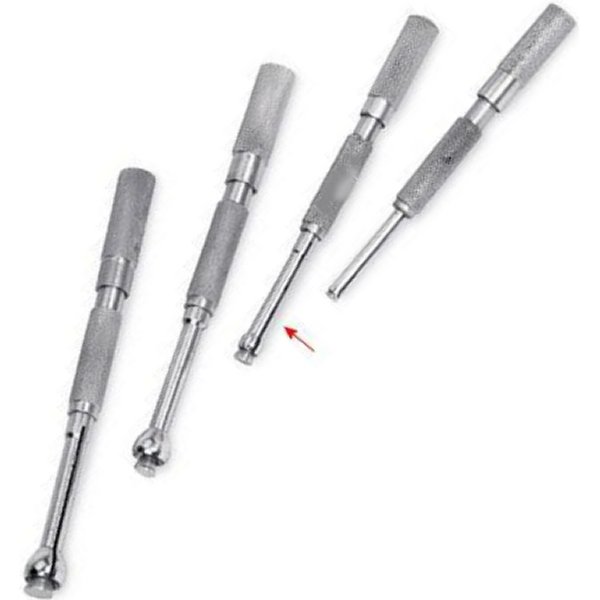 ホールゲージです。範囲:0.200インチ - 0.300インチハンドルのローレット入りノブでサイズを調節できます。底が平らな円型の測定面※商品お届け時期につきまして、通常は一か月半前後となっておりますが仕入れ先の出荷状況により、お時間を頂戴する場合がございます。※商品手配後に、供給不可となる場合がございます。あらかじめご了承のうえご注文ください。