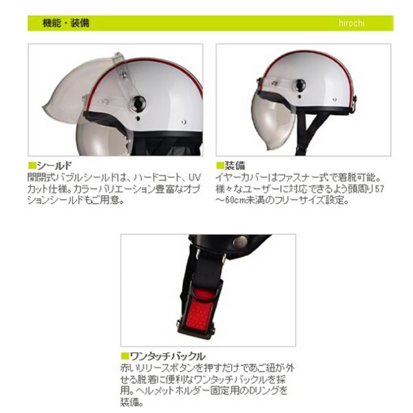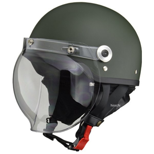 CR-760 リード工業 ヘルメット クロス バブルシールド付ハーフタイプカラー:マットグリーンサイズ:フリー (57cm-60cm)125cc以下用素材:ABS(帽体)、ポリカーボネイト(シールド)付属品:サイズ調整スポンジハーフヘルメット に開閉式バブルシールドを装備したモデル。また、カラーが豊富な専用オプションシールドもご用意。開閉式バブルシールドは、ハードコート、UVカット仕様。カラーバリエーション豊富なオプションシールドもご用意。イヤーカバーはファスナー式で着脱可能。赤いリリースボタンを押すだけであご紐が外せる脱着に便利なワンタッチバックルを採用。ヘルメット ホルダー固定用のDリングを装備。【規格】SG/PSC【届出事業者】株式会社リード工業【検査機関】一般財団法人製品安全協会