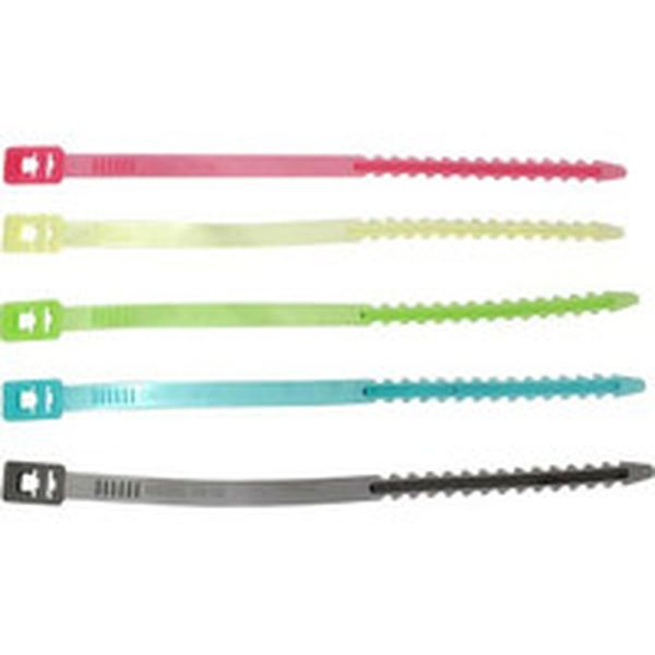 ・大型・幅広ベルトクリップです。・カラフルなスケルトン5色入で結束物の色分けに便利です。・コードをまとめてクリップ。・最大結束径(mm):55・全長(mm):340・摘要:色:赤、黄、緑、青、黒・屋内用・レッド、イエロー、グリーン、ブルー、ブラック、各色1本入・軟質塩化ビニール・生産国 日本・JANコード 4930510316499・質量 50g・コード:370-3011 ・品目:CV34
