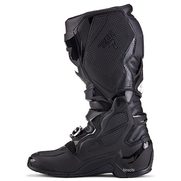 アルパインスターズ ブーツ TECH7サイズ:9(27.5cm)カラー:ブラック革新的な素材、技術、デザインを詰め込んだTech 7は、オフロードでの優れたパフォーマンスを発揮するために全面的に改良。軽量化、快適性、保護性能をさらに向上させながら、バイクとの優れたフィーリングを提供。・ブーツの主な屈曲部は、内側と外側の足首に薄型のピボットシステムを採用し、優れた自由な動きとライダーの快適さを提供。・足部分のTPU製シェルはシフターエリアに革新的なデザインを採用。左右の足に専用設計を施し、メタルシャンクで強化。つま先部分は衝撃や摩擦に対する耐性を強化。・足首とすね部分には衝撃吸収パッドを配置し、衝撃吸収力を向上。・ソールには、フットペグエリアに埋め込まれた革新的な摩耗限界インジケーターを搭載。すり減ると赤い層が現れソール交換のタイミングを知らせる。・クローザーシステムには、ポリマーバックルとアルミフレームを採用し、自己調整機能とクイックリリース機能で個々のフィット感に合わせたカスタマイズが可能。・バックル受け部は自己調整設計で、ストラップの回転を防ぎながら安全なフィット感を保証。・内側パネルはTPU製で、バイクとの接触時に最大のグリップを提供し、耐熱性と耐摩耗性を向上させるラバーインサートを配置。・アキレス腱を保護するため、足首後部にTPUバックブリッジを追加。・EN 13634:2017に基づくCE認証を取得。