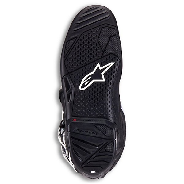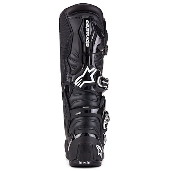 アルパインスターズ ブーツ TECH7サイズ:11(29.5cm)カラー:ブラック革新的な素材、技術、デザインを詰め込んだTech 7は、オフロードでの優れたパフォーマンスを発揮するために全面的に改良。軽量化、快適性、保護性能をさらに向上させながら、バイクとの優れたフィーリングを提供。・ブーツの主な屈曲部は、内側と外側の足首に薄型のピボットシステムを採用し、優れた自由な動きとライダーの快適さを提供。・足部分のTPU製シェルはシフターエリアに革新的なデザインを採用。左右の足に専用設計を施し、メタルシャンクで強化。つま先部分は衝撃や摩擦に対する耐性を強化。・足首とすね部分には衝撃吸収パッドを配置し、衝撃吸収力を向上。・ソールには、フットペグエリアに埋め込まれた革新的な摩耗限界インジケーターを搭載。すり減ると赤い層が現れソール交換のタイミングを知らせる。・クローザーシステムには、ポリマーバックルとアルミフレームを採用し、自己調整機能とクイックリリース機能で個々のフィット感に合わせたカスタマイズが可能。・バックル受け部は自己調整設計で、ストラップの回転を防ぎながら安全なフィット感を保証。・内側パネルはTPU製で、バイクとの接触時に最大のグリップを提供し、耐熱性と耐摩耗性を向上させるラバーインサートを配置。・アキレス腱を保護するため、足首後部にTPUバックブリッジを追加。・EN 13634:2017に基づくCE認証を取得。