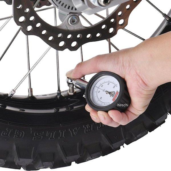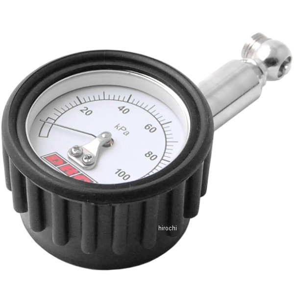 ディーアールシー DRC 低圧専用エアゲージ G201測定範囲:5~100kPaサイズ:縦115mm×高さ63mm×奥行40mmメーターパネル直径:47mm競技志向ユーザーに最適。極低圧エアゲージ。低圧で走行するトライアル、エンデューロ、モトクロスなどの競技に最適。最大100kPa表示のオートバイ専用エアゲージ。測定精度の高いダイヤフラム式を採用。細かい目盛りでシビアな空気圧測定が可能。ラバーバンパーが本体を衝撃から守る。コンパクトでかさばらないデザイン。減圧調整が可能なアジャストボタンを装備。空気圧を測定しながら微調整が可能。90度の口金採用で、ディスクローターやスプロケットとの干渉を防ぐ。口金部分は360度自由に回転するため、どの角度でも目盛りを確認しやすい。目盛りは2kPa刻みで、細かな測定が可能。測定時に目盛りの針が固定されるため、数値の確認が容易。口金の裏に配置されたピンでムシを押して空気を抜くことが可能。※100kPa以上入った状態で測定しないでください。 内部部品が破損する恐れがございます。 必ずゲージ内の圧力を抜いてから保管してください。