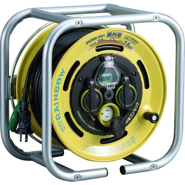 ・段積みできる角型フレームタイプです。・倉庫や車載時など限られたスペースが有効に使えます。・立てても寝かせても使え、持ち運びにも便利です。・円盤裏側への面倒な電線の巻き落ちを防ぐ専用リング金具付です。・5段まで段積み可能です。・雨中でも安心の防雨型です。・倉庫での収納や、車載時の収納スペースの有効活用に。・電線種:VCT・電線仕様長さ(m):30・電線仕様太さ([[MM2]]):2.0・電線仕様芯数(C):3・定格電流(A):6・コンセント仕様定格:2P・15A・125V アース付・コンセント仕様形状:[[三相1]]・コンセント仕様個数:3・通電ランプ:○・接地端子:○・2P・3P兼用プラグ:○・漏電遮断器仕様:漏電地絡保護専用・AC100V・コンセント防雨キャップ・円盤/鉄板 フレーム/鉄パイプ 電線/ビニルキャプタイヤ・生産国 日本・JANコード 4930510127774・質量 9.700kg・コード:868-8405 ・品目:DBE30K