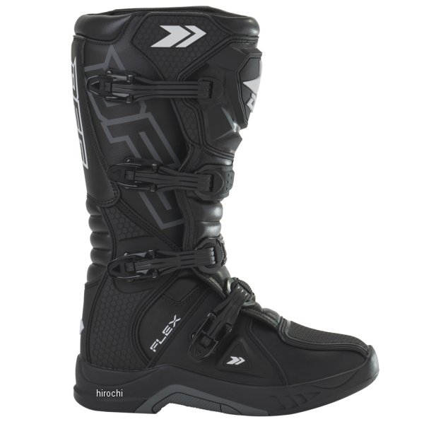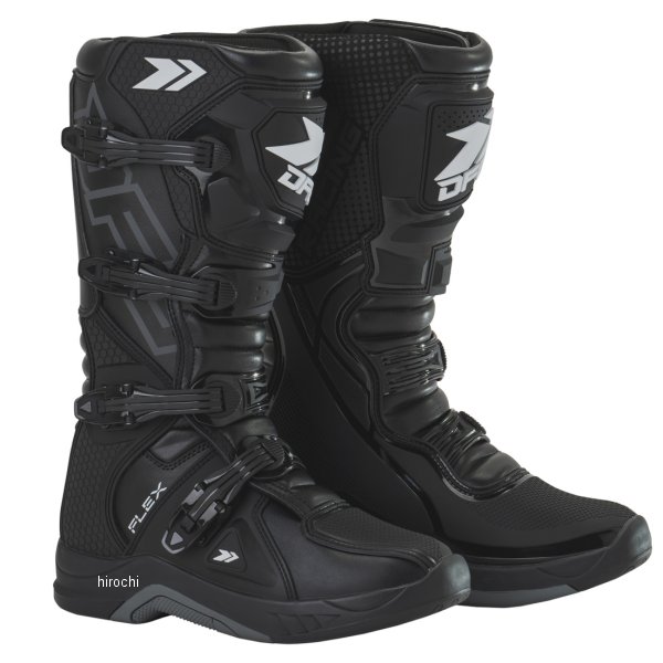 ディーエフジー DFG フレックス ブーツサイズ:29.0cmカラー:ブラック甲部分素材:合成皮革、ポリウレタン(TPU)・裏地分素材:ポリエステルメッシュ、スパンデックス・アウトソール素材:合成樹脂(ラバー)【仕様説明】オフロード初心者~中級者に最適な、フラットソール モトクロスブーツ。ブーツ本体は操作性を損なわずに高い強度を確保。転倒した際や障害物等から足を保護。本格的なモトクロスコースからツーリングまで幅広く対応。日本人の幅広・甲高な足の形状に合わせた設計で、快適なフィット感を実現。・耐摩耗性、耐油性に優れたフラットタイプのラバーソールは、スムーズなライディングコントロールを実現。・クイックバックルにより、簡単で確実な固定とスムーズな脱ぎ履きが可能。ブーツストラップは細かな締め付け調整ができる。・障害物や飛び石が直接バックルに当たり破損するのを防ぐ、バックルガードを装備。・ブーツ内側に耐熱性、耐久性に優れ、滑りにくい本革スウェードを採用。エンジンやエキゾーストパイプの熱からブーツを保護し、フラット形状でスムーズなライディングにも貢献。・足首外側部分に柔軟素材を配置。足首まわりが動きやすいため、シフトレバーやブレーキペダルなどの操作性に優れる。・インナーには通気性と吸汗性に優れる3Dメッシュを使用。また、足首周辺に肉厚なクッション材を内蔵し、衝撃吸収と柔らかな履き心地を実現。※実際の着用感はサイズ表記の数値より小さめになります。普段お履きになっている靴のサイズより、大きめのサイズを選んで頂く事をお勧めします。