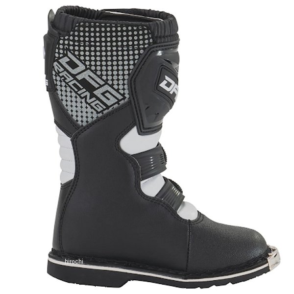 ディーエフジー DFG フレックス ブーツ キッズサイズ:21.0cmカラー:ブラック/ホワイト・甲部分素材:合成皮革、ポリウレタン(TPU)・裏地分素材:ポリエステルメッシュ、スパンデックス・アウトソール素材:合成樹脂(ラバー)【仕様説明】キッズライダーに最適な、コストパフォーマンスに優れるモトクロスブーツ。ブーツ本体は操作性を損なわずに高い強度を確保。転倒した際や障害物等から足を保護。キッズの足に合わせた専用設計で、快適なフィット感を実現。本格的なモトクロス走行に対応。・耐摩耗性、耐油性に優れたフラットタイプのラバーソールは、スムーズなライディングコントロールを実現。・クイックバックルにより、簡単で確実な固定とスムーズな脱ぎ履きが可能。・ブーツストラップは細かな締め付け調整ができる。・障害物や飛び石が直接バックルに当たり破損するのを防ぐ、バックルガードを装備。・車体と接触する足首周辺にグリップレザーを使用。ライディングによるブーツ本体の摩耗を防ぎつつ、強度を確保することで足首のねじれ損傷を防止。・インナーには通気性と吸汗性に優れる3Dメッシュを使用。また、足首周辺に肉厚なクッション材を内蔵し、衝撃吸収と柔らかな履き心地を実現。