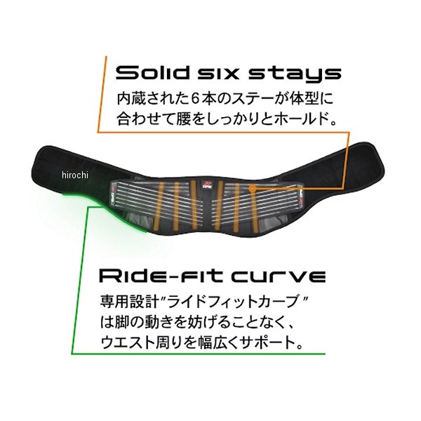 ディーエフジー DFG アクシス ライディングベルトサイズ:6インチ S/M(28-32インチ)【素材】ポリエステル70%、ナイロン20%、ポリウレタン10%【仕様説明】6インチ(幅15cm)のウエストベルトです。細めの形状で動きやすさを重視。ライディング時の動作を妨げることなく、腰を支えます。専用設計ライドフィットカーブにより、足の動きを妨げることなくウエスト周りをサポート。両側にストレッチメッシュパネルを設けたことにより、蒸れにくく通気性に優れます。上下ダブルサポートベルトはベルクロ固定を採用し、簡単に調整可能です。内蔵された6本のステーが背中全体を支えます。フックなどに掛けられる便利なループ付き。細めのコンパクト設計で、女性やユースにも最適です。