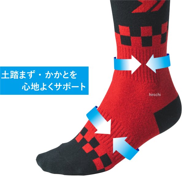 ディーエフジー DFG モトソックス ユースサイズ:YLカラー:レッド素材:ポリエステル:56%、コットン:37%、その他:7%【仕様説明】オフロードブーツ用に開発した厚手のスタンダードソックス。クッション性のあるパイル加工でブーツ内側との干渉を軽減。カラーはレッド、ブルーをラインナップ。吸汗速乾素材を採用し、ブーツ内のムレやベタつきを軽減。全体に厚手のパイル加工を施し、プロテクター等の干渉や振動から足を保護。 膝下丈。