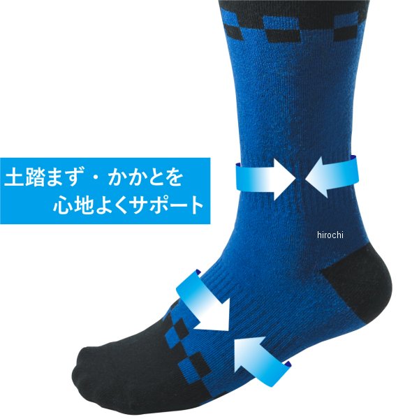 ディーエフジー DFG モトソックス ユースサイズ:YSカラー:ブルー素材:ポリエステル:56%、コットン:37%、その他:7%【仕様説明】オフロードブーツ用に開発した厚手のスタンダードソックス。クッション性のあるパイル加工でブーツ内側との干渉を軽減。カラーはレッド、ブルーをラインナップ。吸汗速乾素材を採用し、ブーツ内のムレやベタつきを軽減。全体に厚手のパイル加工を施し、プロテクター等の干渉や振動から足を保護。 膝下丈。