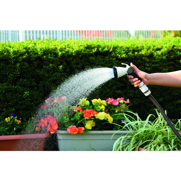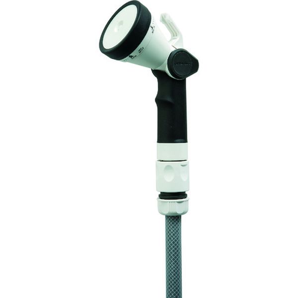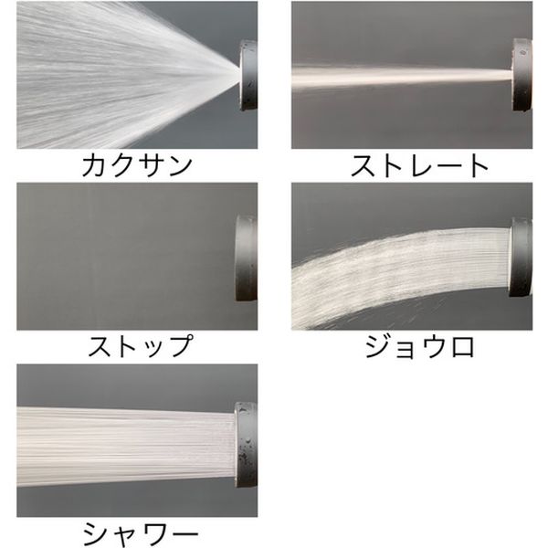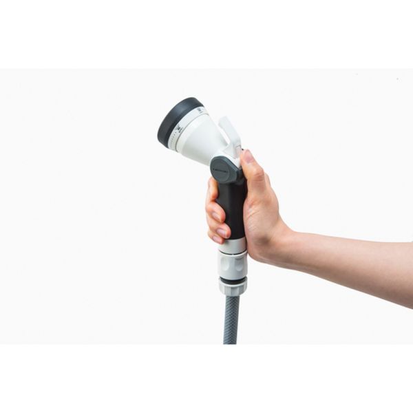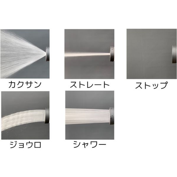 ・一般的な散水ノズルの約1.5倍の水量です。・水量が多いので散水作業の時間を短縮できます。・水量調節は親指で操作可能なスライドレバーを採用しています。・バケツへの水溜めに便利なひっかけ機能付きです。・女性でも持ちやすいコンパクト設計で、握りやすいグリップ形状に仕上げました。・水形はカクサン、ストレート、ストップ、ジョウロ、シャワーの5種類で用途に合わせて使用できます。・DN-S5SLHは本体材質ABS樹脂、DNM-S5SLHは耐久性があるメタル製です。・散水用。・適合ホース(mm)内径×外径:12~15×20・高さ(mm):180・適合ホース(mm)内径:12~15・本体材質:ABS・コネクター付・本体・カップリング:ABS樹脂・本品は園芸・散水用です。・水道水以外は使用しないでください。・室内では使用しないでください。・ノズルをぶつけたり、落下等の衝撃を与えないでください。・使用後は製品およびホース内の水を抜いて室内で保管してください。・生産国 台湾・JANコード 4971715113636・質量 160g